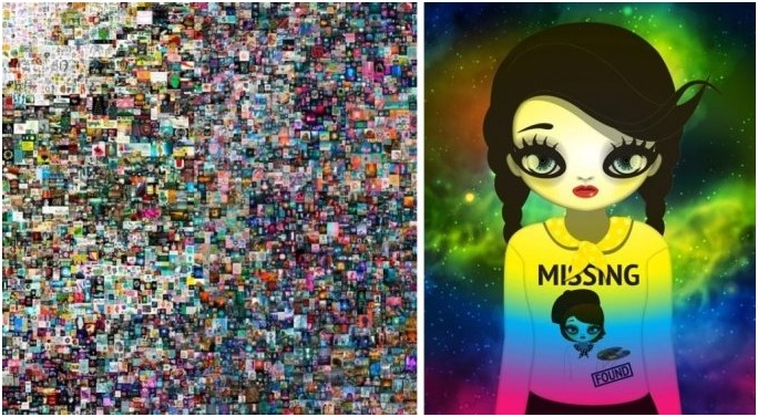크리스티 경매에서 758억원에 낙찰된 비플의 작품(왼쪽)과 국내 첫 NFT 미술품 경매에서 6억에 낙찰된 마리킴의 'Missing and found' /사진=크리스티, 피카프로젝트