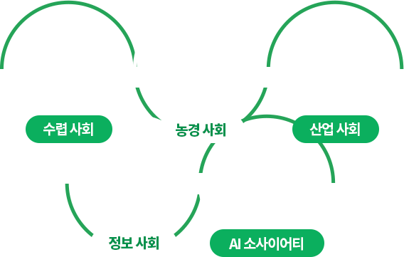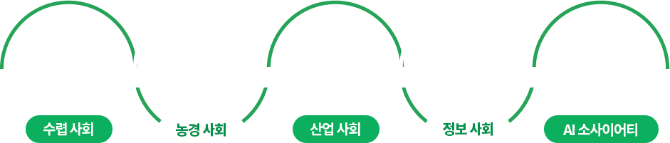 오늘날 우리에게 다가온 AI 소사이어티는 인류가 수렵 사회, 농경 사회, 산업 사회, 정보 사회에 이어 겪게 된 다섯 번째 사회다.수렵 사회는 인간의 신체 능력과 서로에 대한 배려에 크게 의존 하는 사회였고, 농경 사회는 토지가 곧 생명이었다. 산업 사회는 대량 생산과 규격화가 가능해지며 자본과 노동력 쟁탈전이 벌어졌던 시대였고, 정보 사회는 'www'로상징되는 정보 혁명이 일어난 사회다. 그리고 다섯 번째 사회인 AI 소사이어티는 AI가 전기만큼이나 흔한 기술로 자리 잡은 사회다. AI 소사이어티에서는 연령이나 성별, 지역, 언어의 차이와 상관없이 모든 사람들이 AI가 적용된 다양한 서비스와 상품을 누리며, 지능이 높은 기계와 긴밀 하게 협업하게 된다. (책에서는 이러한 사회적 모습을 ‘연결(wire)’, ‘협업(with)’, ‘확장(widen)’이라는 3가지 키워드로 정리하고 설명했다)
