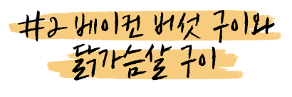 올려 굽는다. 이후 다시 뒤집어 굽기를 반복한다. 2/3 정도 익었다면 불을 끄고 뚜껑을 덮어서,