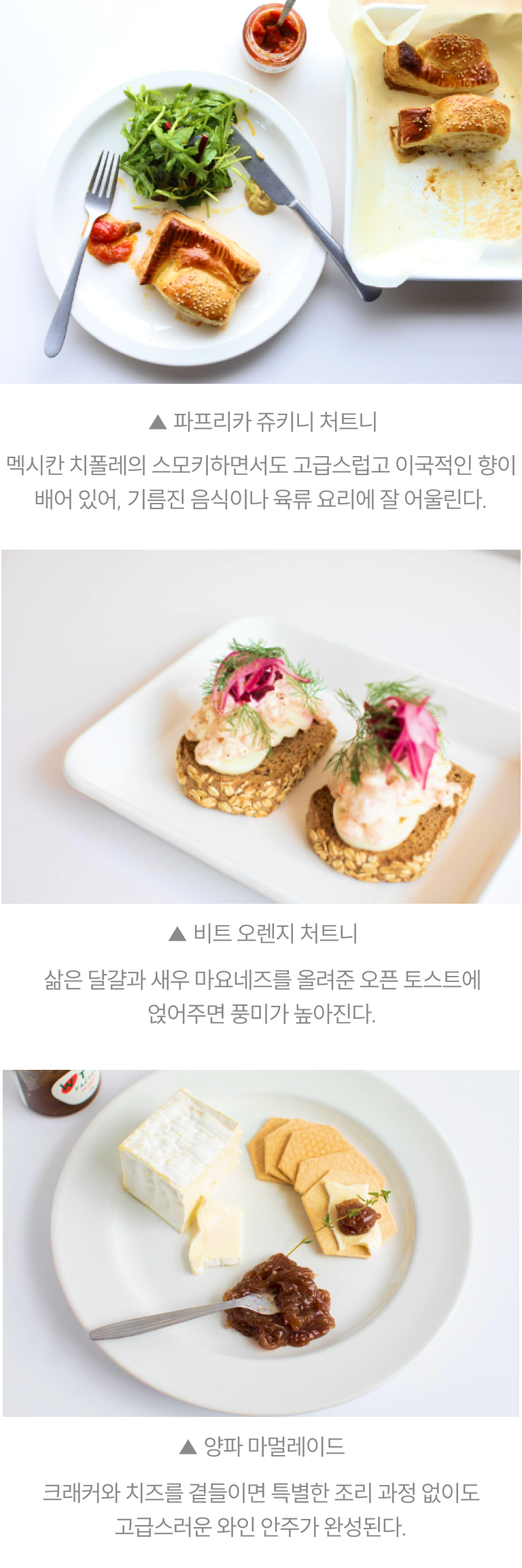 그렇게 못난이 채소를 주재료로 한 ‘처트니’를 첫 제품으로 출시하게 되었어요. 해외 생활 중에 즐겨 먹었는데, 한국에서는 찾기 힘들어 아쉬웠던 식품이거든요. 채소를 새콤달콤하게 졸여 요리에 곁들여 먹는 처트니는 유럽의 대중적인 소스 중 하나지만, 국내에는 생산하는 곳조차 많지 않았을 만큼 생소한 식품이에요. 코로나 이후 와인과 치즈 수요가 급격히 늘어나는 현상을 보고 좋은 아이템이라고 판단했습니다. 처트니 상품이 성공적으로 판매된 이후에는 양파 마멀레이드, 채소 절임, 라자냐 등 이국적인 식료품을 꾸준히 출시하고 있습니다.