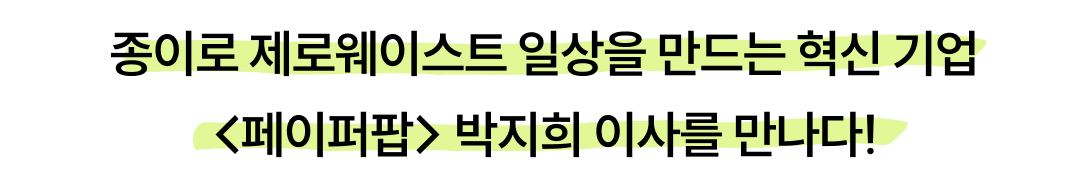이번 웹진 33호 ‘같이ESG’ 코너에서는 종이가구를 만들어 일상 속 제로웨이스트 실천을 돕는 소셜벤처1 <페이퍼팝>의 박지희 이사를 만났습니다. <페이퍼팝>은 폐기물 없이 업사이클이 가능한 종이 소재로 가구를 비롯해 일상 속에서 활용되는 다양한 제품을 만들어 고객의 제로웨이스트(Zero Waste) 실천을 돕고 있습니다.