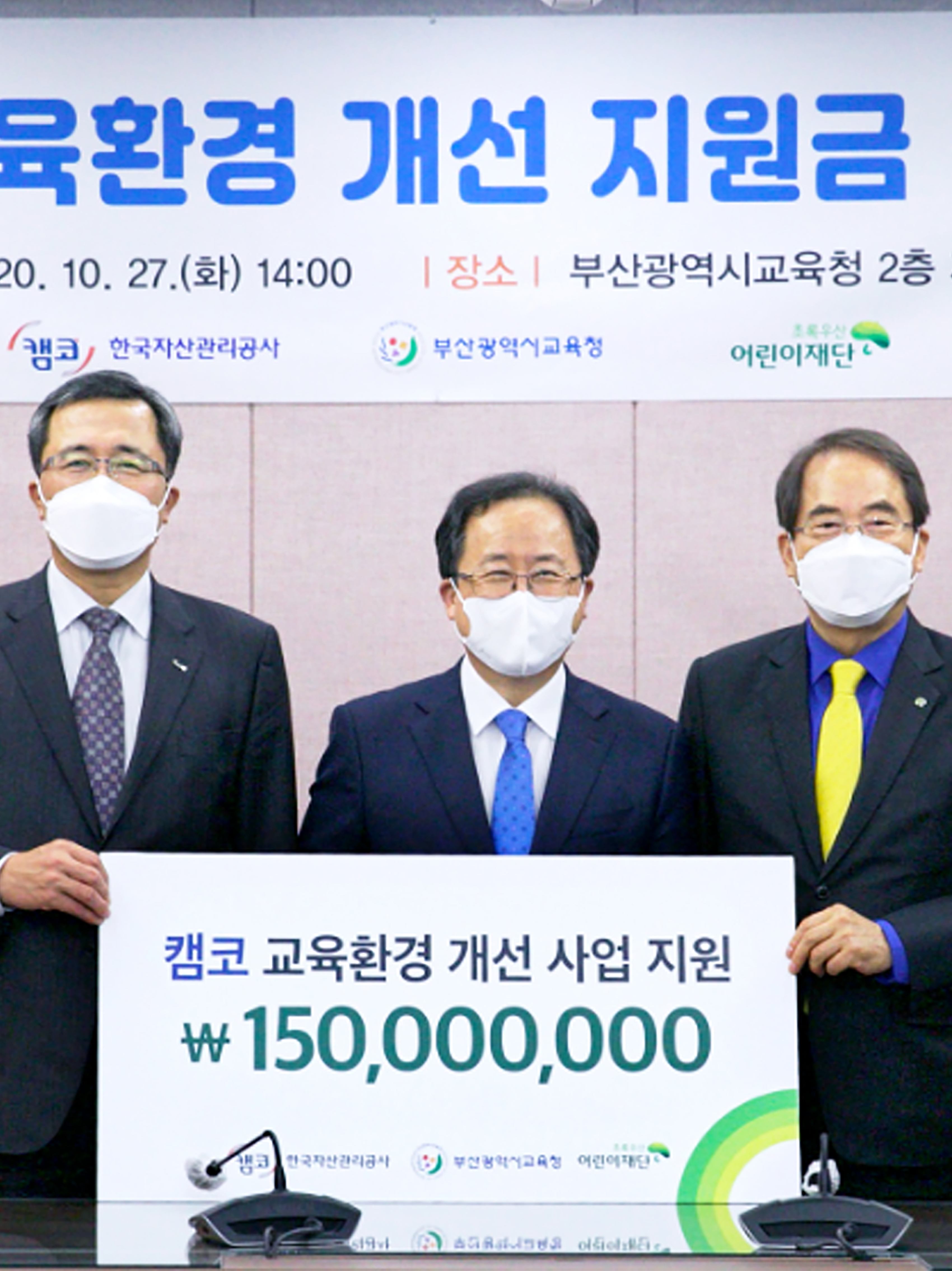 캠코, 맞춤형 나눔활동 기부금 2억원 전달 캠코는 12월 21일(월) 부산광역시청에서 문성유 캠코 사장, 변성완 부산시장 권한대행, 신정택 부산사회복지공동모금회 회장 등이 참석한 가운데 부산광역시에 취약계층을 위한 맞춤형 나눔활동 기부금 2억원을 전달했다. #맞춤형지원 #캠코산타클로스 #기부