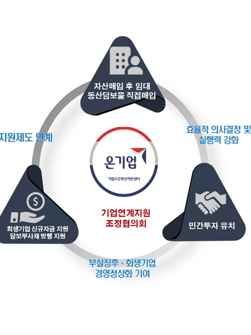 캠코, ‘기업연계지원 조정협의회’ 신설 캠코는 2월 19일(금) 중소 회생기업 등 지원을 위한 효율적 의사결정과 실행력 강화를 위해 「기업연계지원 조정협의회」(이하 협의회)를 신설ㆍ운영한다고 밝혔다. #기업연계지원 #회생기업지원 #온기업